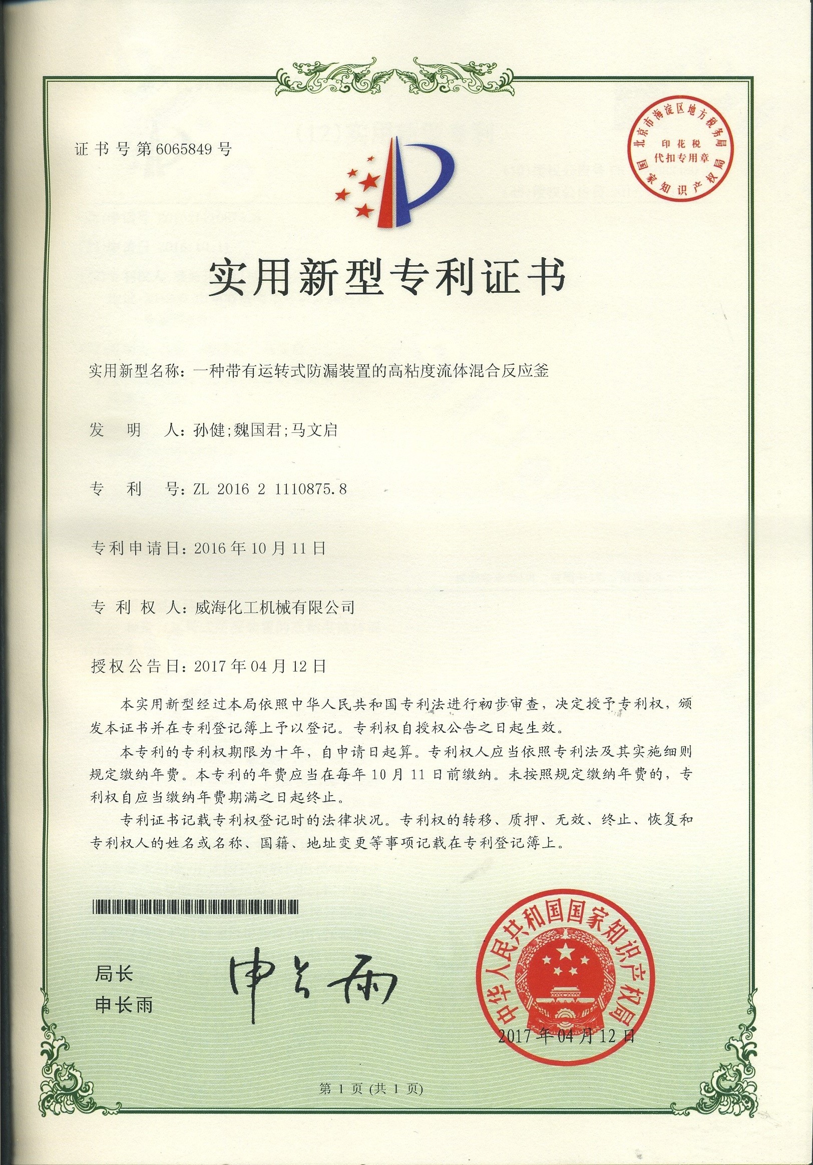 公司建有磁力驅(qū)動測試試驗(yàn)室、攪拌模擬試驗(yàn)室、反應(yīng)釜流體混合攪拌重點(diǎn)實(shí)驗(yàn)室等,科研力量雄厚。截至2024年,公司共承擔(dān)近280項(xiàng)自主/合作開發(fā)任務(wù),先后承擔(dān)省級新產(chǎn)品開發(fā)任務(wù)25項(xiàng),其中23項(xiàng)產(chǎn)品已達(dá)到國內(nèi)水平。獲得各類省、市級技術(shù)創(chuàng)新獎(jiǎng)30余項(xiàng);參與起草、修訂標(biāo)準(zhǔn)共8項(xiàng),GB/T30098-2013實(shí)驗(yàn)室用磁力驅(qū)動反應(yīng)釜標(biāo)準(zhǔn)、HG/T3648-2011磁力驅(qū)動反應(yīng)釜標(biāo)準(zhǔn)、GB/T29254-2012實(shí)驗(yàn)室反應(yīng)釜用控制器標(biāo)準(zhǔn)、NB/T47002.1~47002.4-2019壓力容器用復(fù)合板;已獲得授權(quán)專利95項(xiàng),其中發(fā)明專利19項(xiàng),實(shí)用新型專利69項(xiàng),外觀專利7項(xiàng);擁有專有技術(shù)和核心技術(shù)40余項(xiàng)。